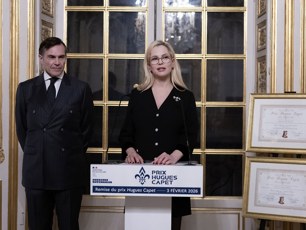 Discours prononcé par le Prince Charles-Philippe et la Princesse Naomi d'Orléans, lors de la cérémonie de remise du Prix Hugues Capet 2025, mardi 3 février à l'hôtel de Soubise, Archives nationales.